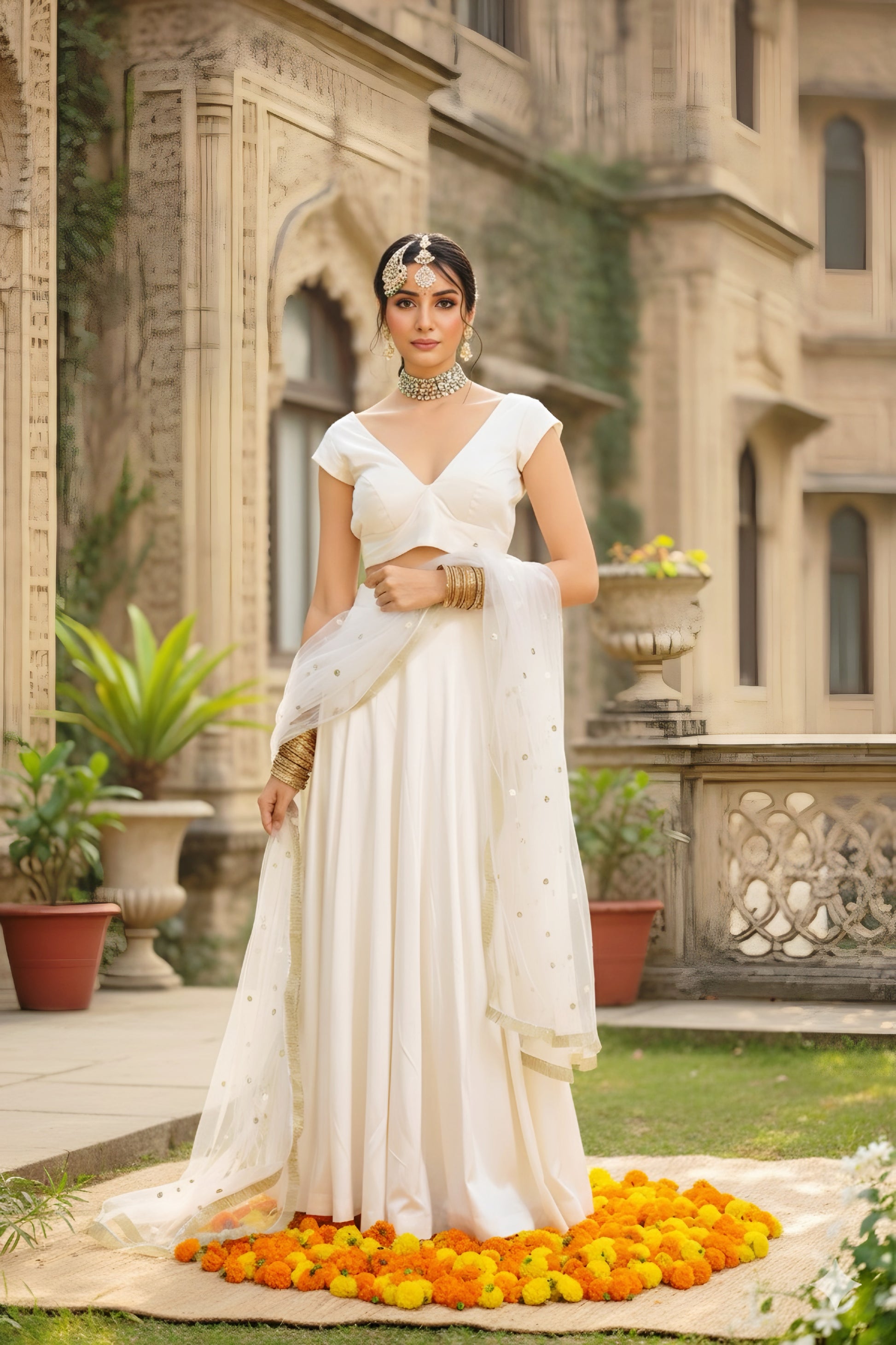 Ethereal, pure, and timeless — Noor – The Ivory Whisper Ensemble embodies understated luxury and effortless charm. Crafted in pure silk, this ensemble drapes like liquid moonlight, reflecting grace and poise in every fold.